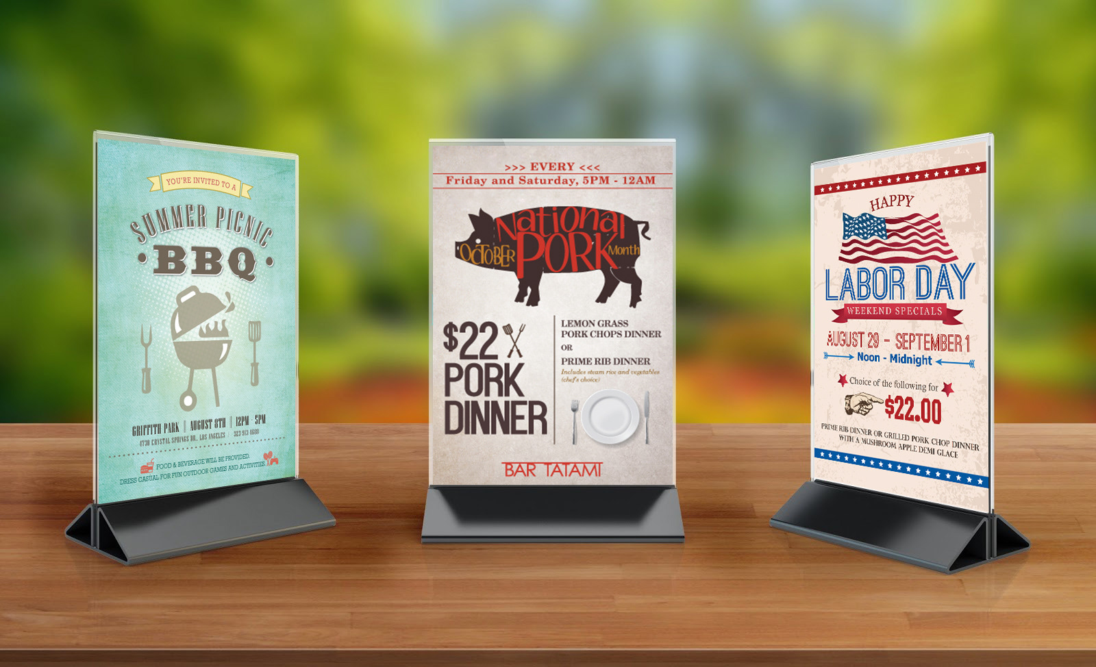 Our Table Tents are professionally printed on durable cardstock and designed to stand upright on any flat surface. Ideal for restaurants, cafes, trade shows, and events, they provide a compact and effective way to showcase menus, promotions, or important information. Available in various sizes and customizable designs, these table tents help grab attention and engage your audience directly at the table.